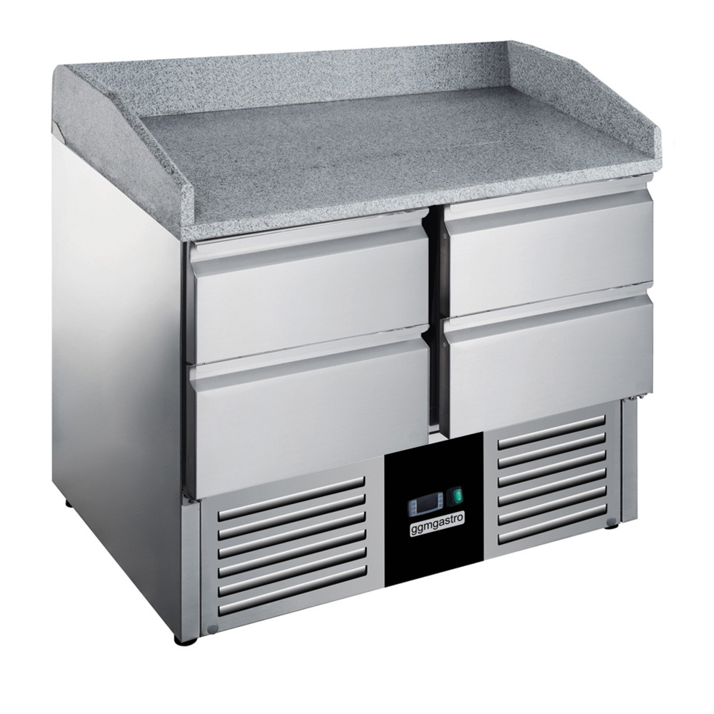 Холодильний стіл для піци - 0,9 x 0,7 m - з 4 шухляди та Granitplatte GGM Gastro