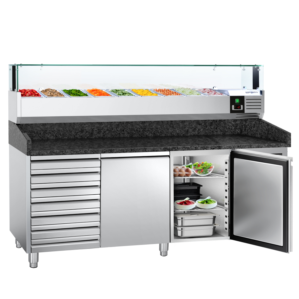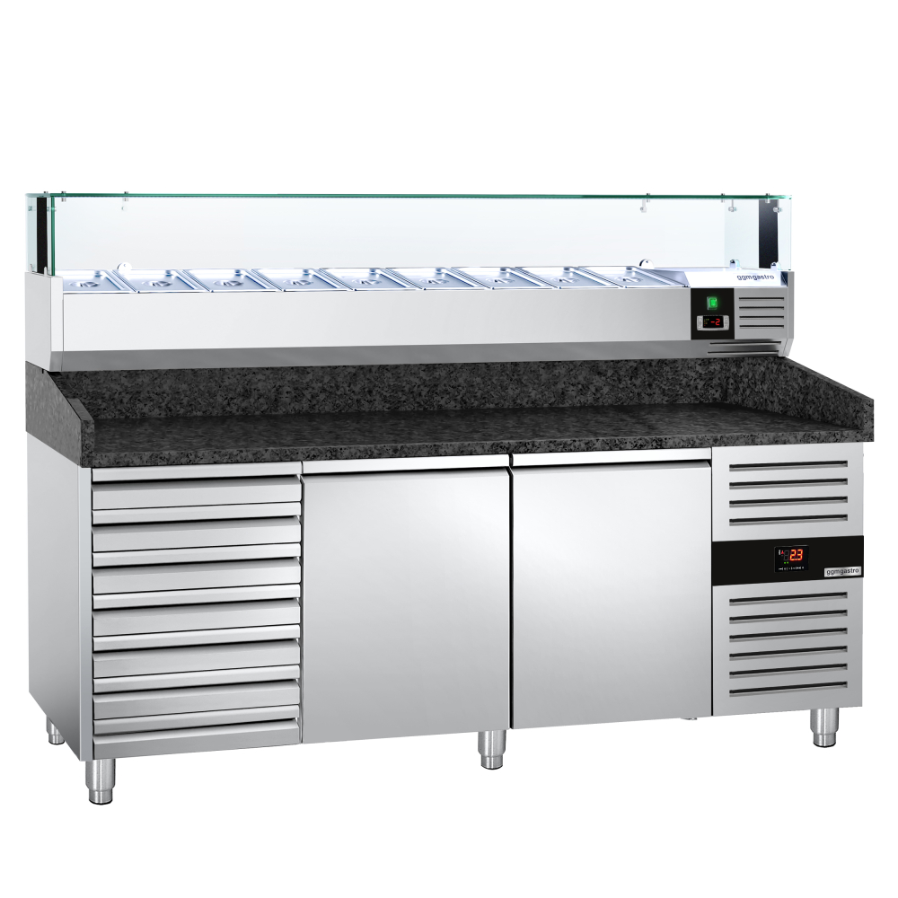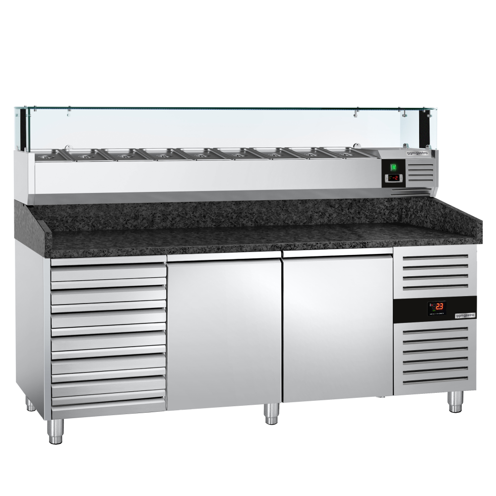 Холодильний стіл для піци PREMIUM - 2,0 x 0,8 m - 2 скляних дверей та 7 шухляд GGM Gastro
