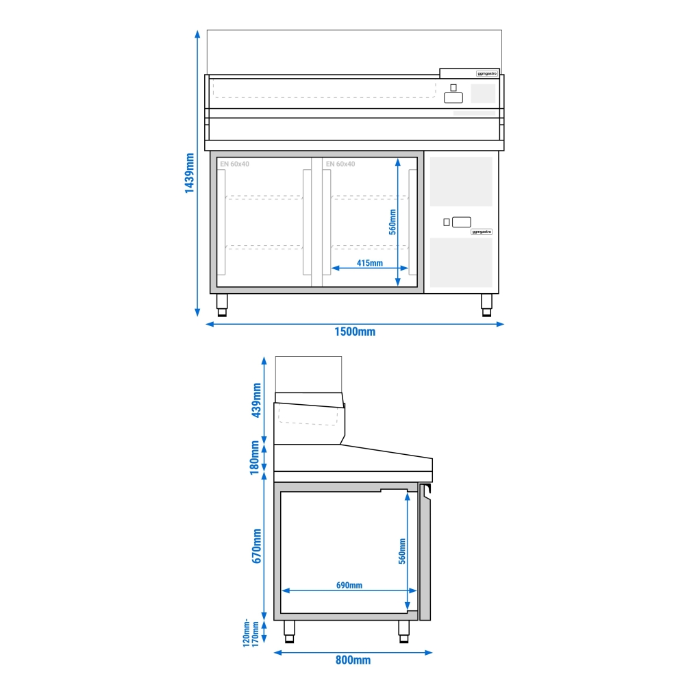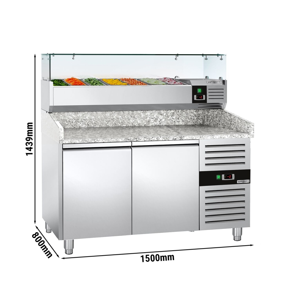 Холодильний стіл для піци з настільною вітриною PREMIUM - 1,5 x 0,8 м / 2 двері / 390 л GGM Gastro